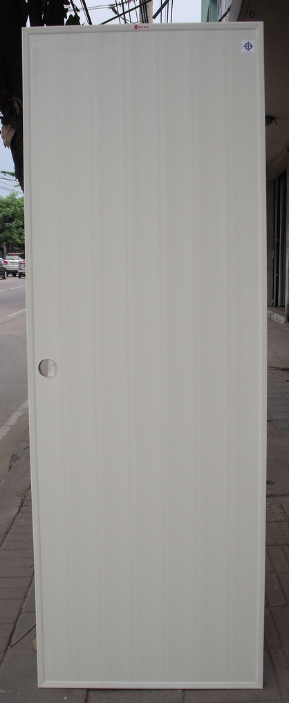 ประตูpvc (BS1) ทึบล้วนเจาะลูกบิด โครงสร้างภายในผลิตแบบอินเตอร์ล็อคเพื่อความแข็งแรงให้กับตัวบาน หน้าบานเป็นแบบมีร่องหนา1มิล